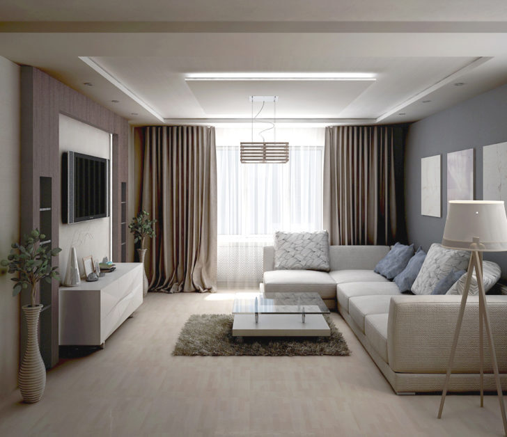 - низкая мебель (диваны, тумбы, кресла) создаёт ощущение простора в комнате с низкими потолками